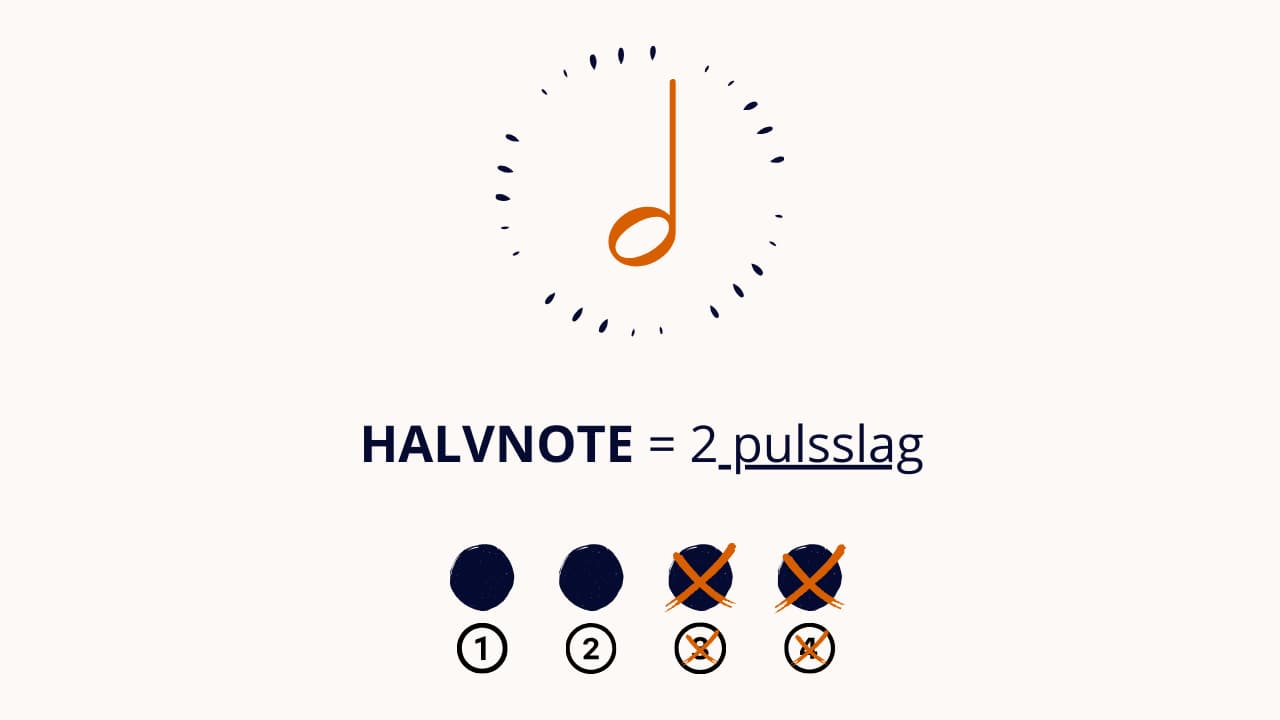 I en vanlig taktart, for eksempel 4/4, der hver takt er delt inn i fire slag, vil en halvnote vare i to slag. Den noteres som en oval form med en stilk som enten går opp eller ned fra midten. Hvilken retning stilken peker har ingen betydning for notens varighet.