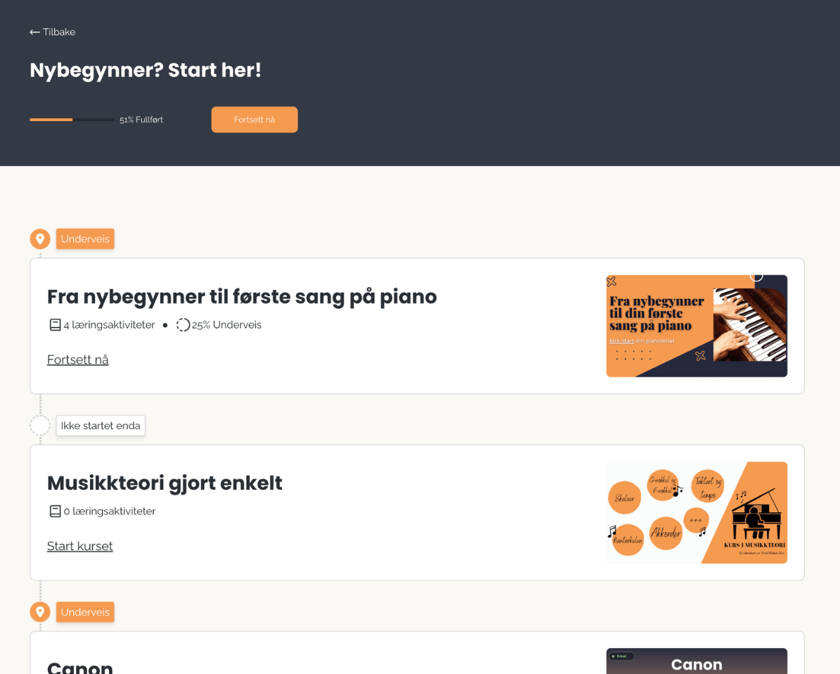 Hvert kurs er laget for å gi deg en tydelig progresjon, så du alltid vet hva du skal øve på for å få resultater. Lær effektivt, hold motivasjonen oppe og se fremgang fra første dag!
