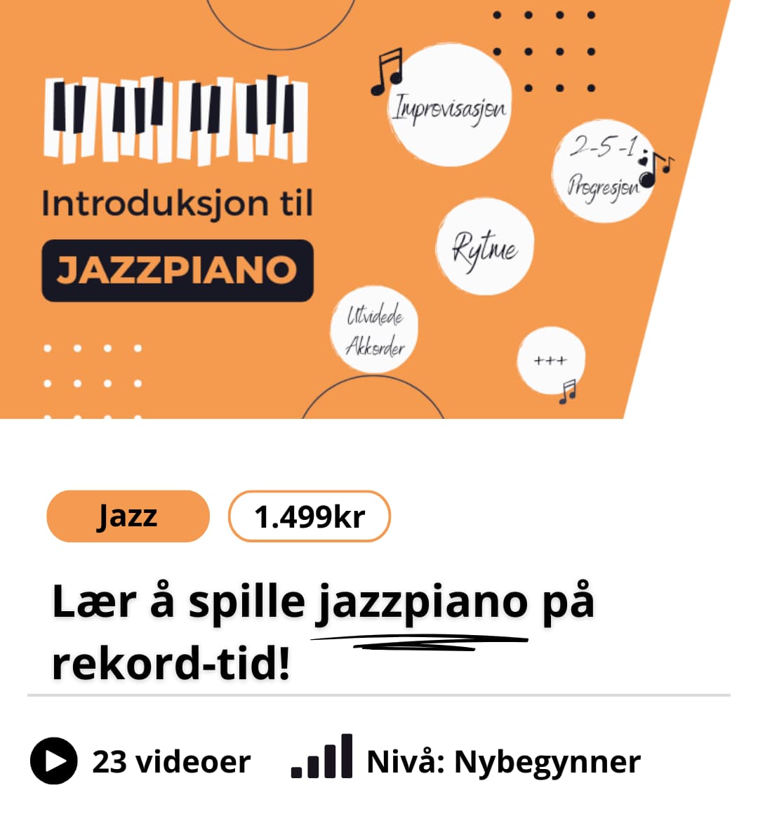 Velg blant et bredt utvalg av populære sanger i ulike sjangre, eller fordyp deg i større temaer som jazzpiano, musikkteori og håndkoordinasjon. Enten du er helt nybegynner eller allerede kan spille litt, finner du kurs som passer for deg.