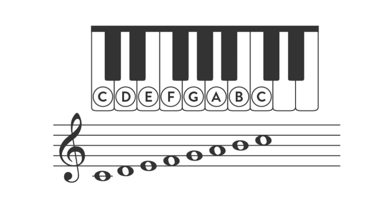 For å hjelpe deg med å visualisere, her er C-dur skalaen: