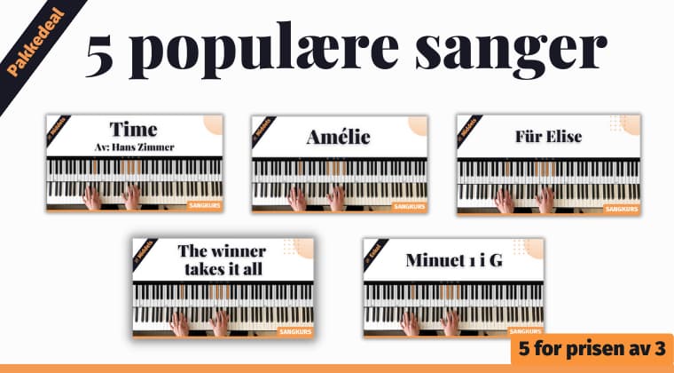 I denne kurspakken guider jeg deg steg for steg gjennom 5 populære sanger – på en måte som er både forståelig, inspirerende og praktisk – uansett hvilket nivå du er på.