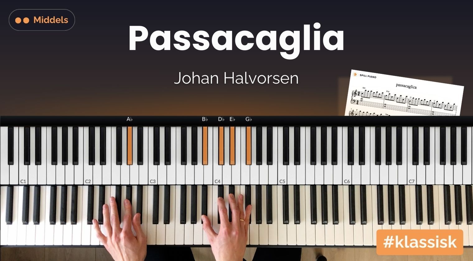 Passacaglia er et vakkert og stemningsfullt pianostykke som virkelig fanger lytteren – perfekt for både klassiske entusiaster og de som vil utfordre seg selv på piano. Du får både video og noter (PDF + interaktive) som gjør det enkelt å følge med, og før du vet ordet av det sitter du og spiller hele stykket selv.
